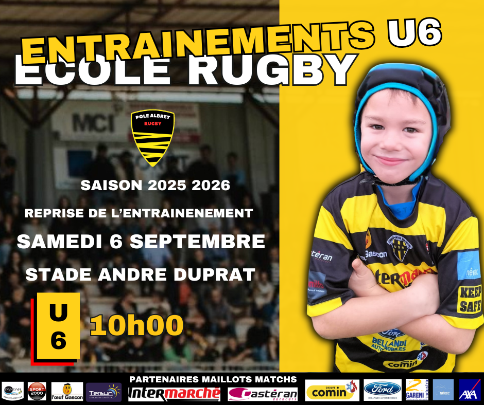 Entrainements depuis le 6 septembre pour nos U6 au stade andré Duprat le samedi de 10h00 à 12h00