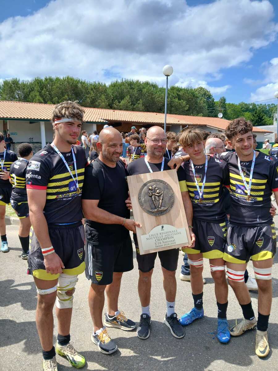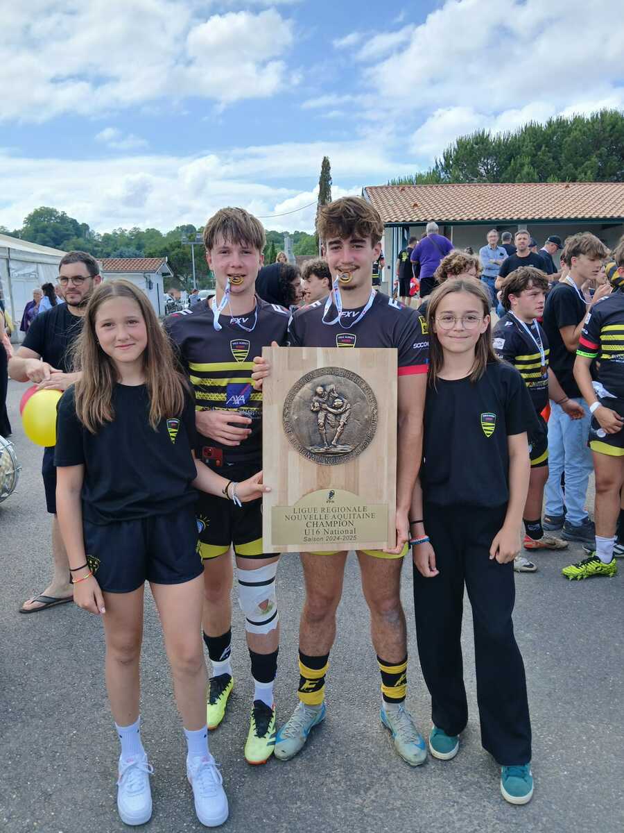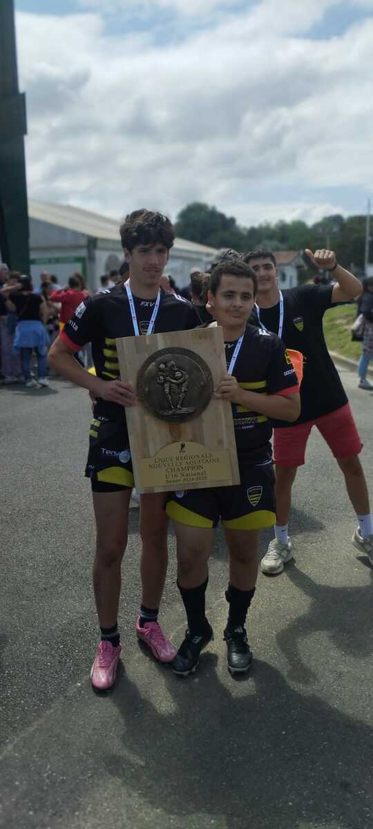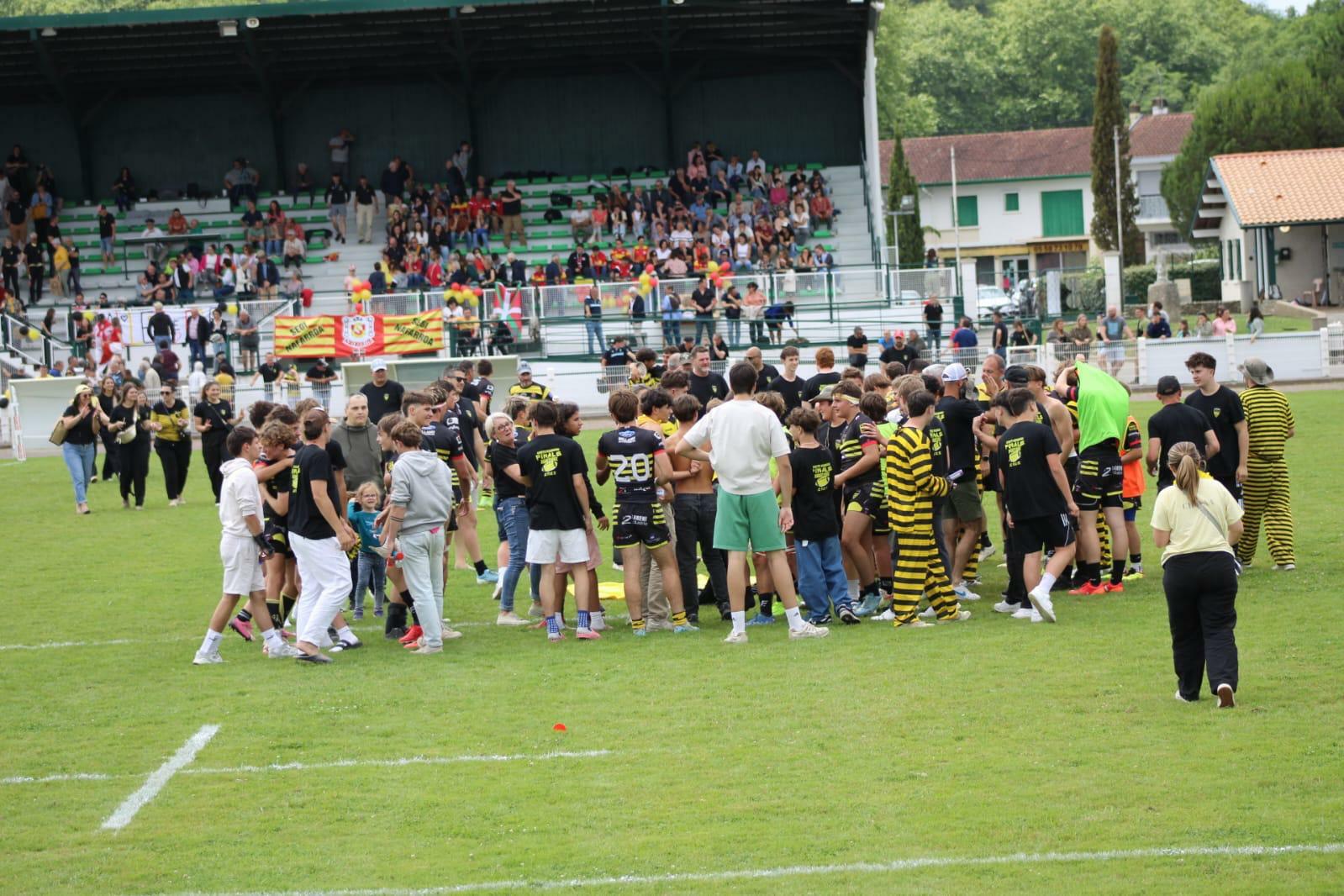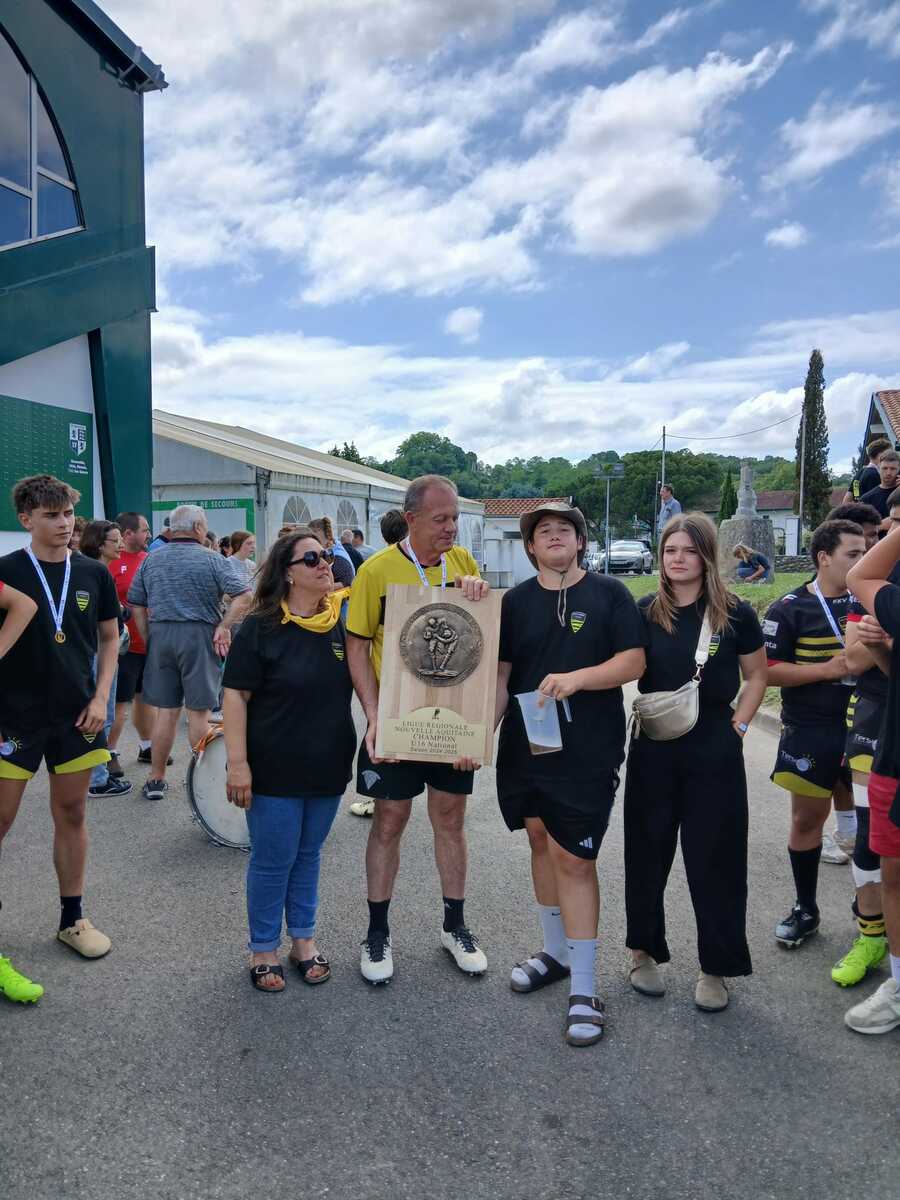 Ce sont les nouveaux champions de la Ligue Aquitaine, niveau national, qui l'auraient cru, personne. D'un niveau régional 1, il se retrouve par repêchage à un niveau national et quel parcours pour finir champion Aquitaine face à Nafarroa sur le score de 30 à 24. Un grand grand grand grand bravo![]()