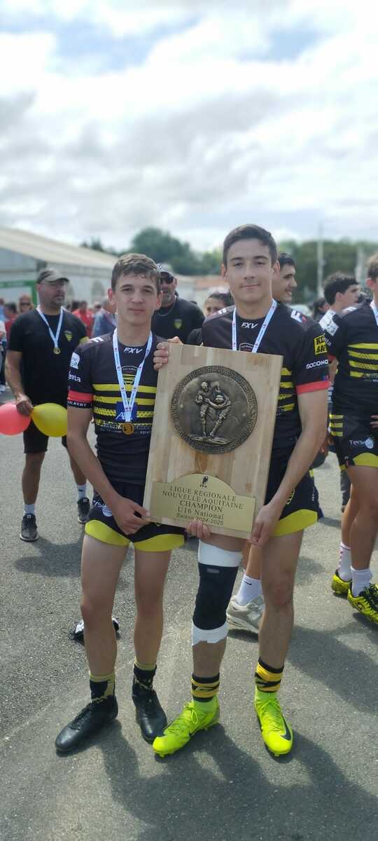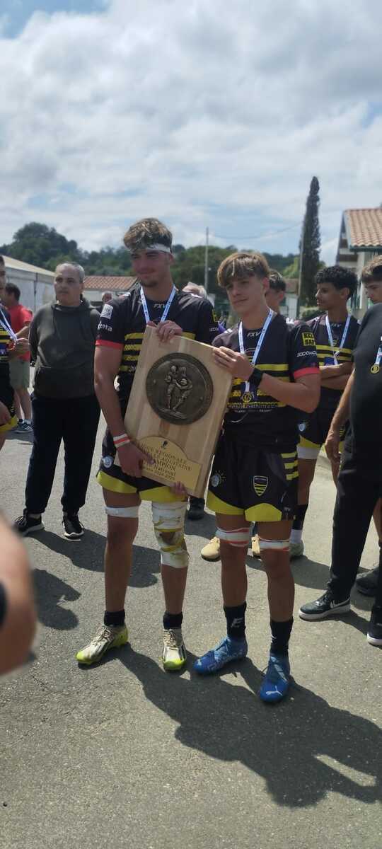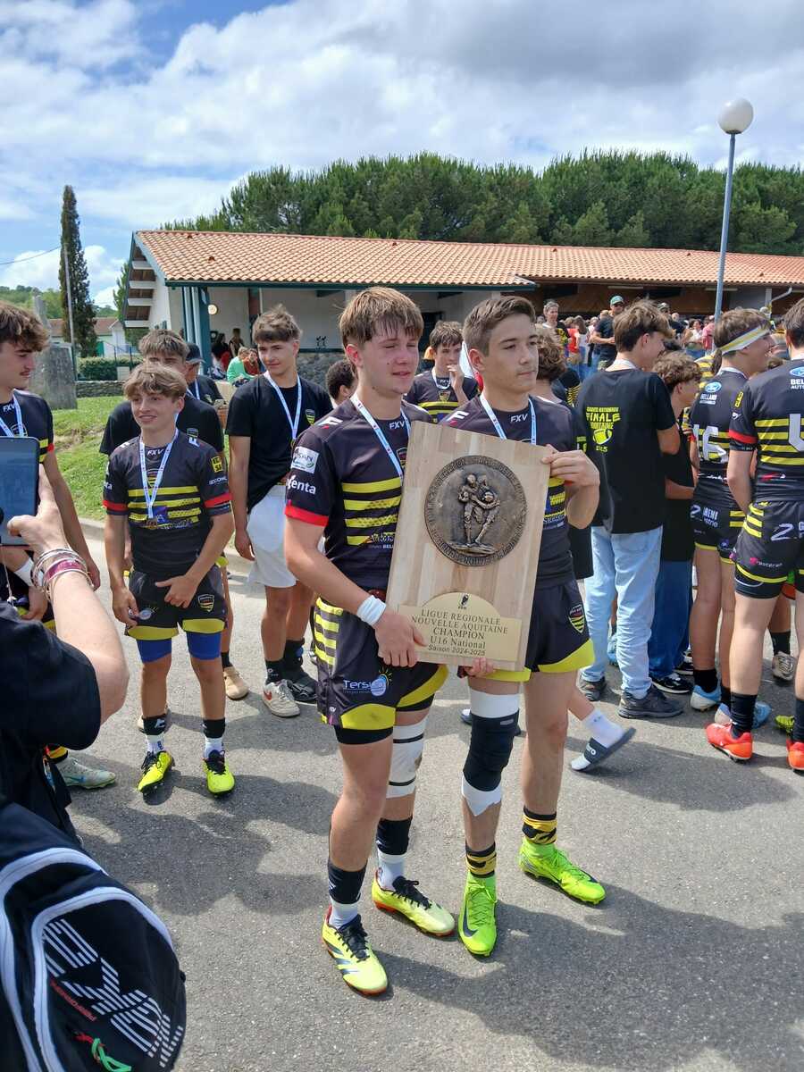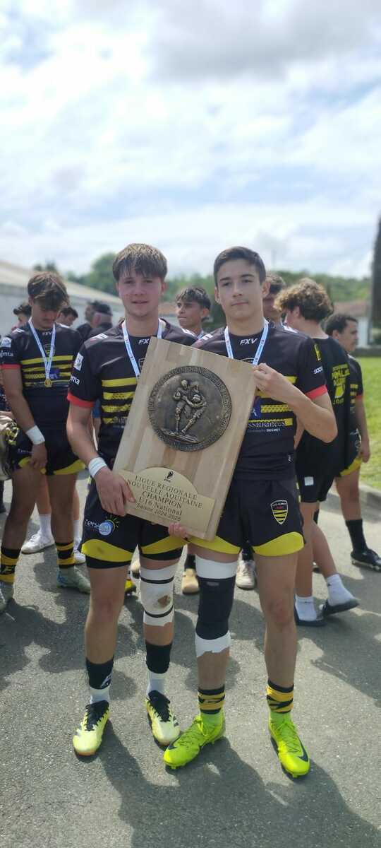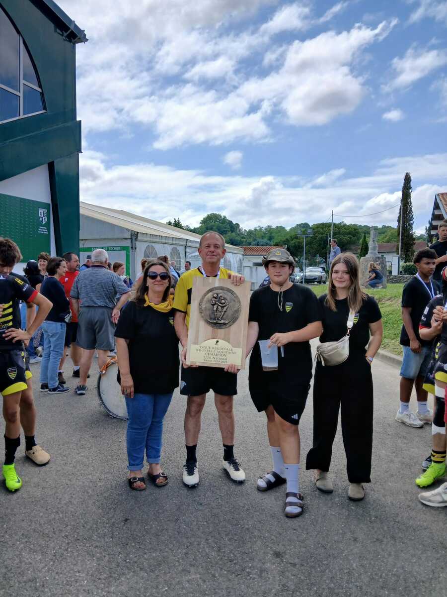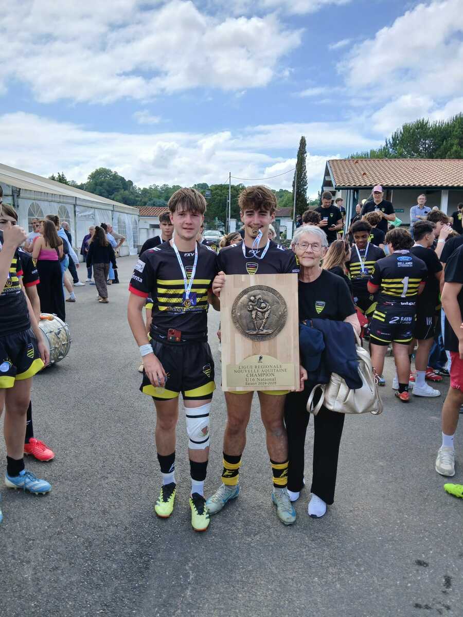 Ce sont les nouveaux champions de la Ligue Aquitaine, niveau national, qui l'auraient cru, personne. D'un niveau régional 1, il se retrouve par repêchage à un niveau national et quel parcours pour finir champion Aquitaine face à Nafarroa sur le score de 30 à 24. Un grand grand grand grand bravo![]()
