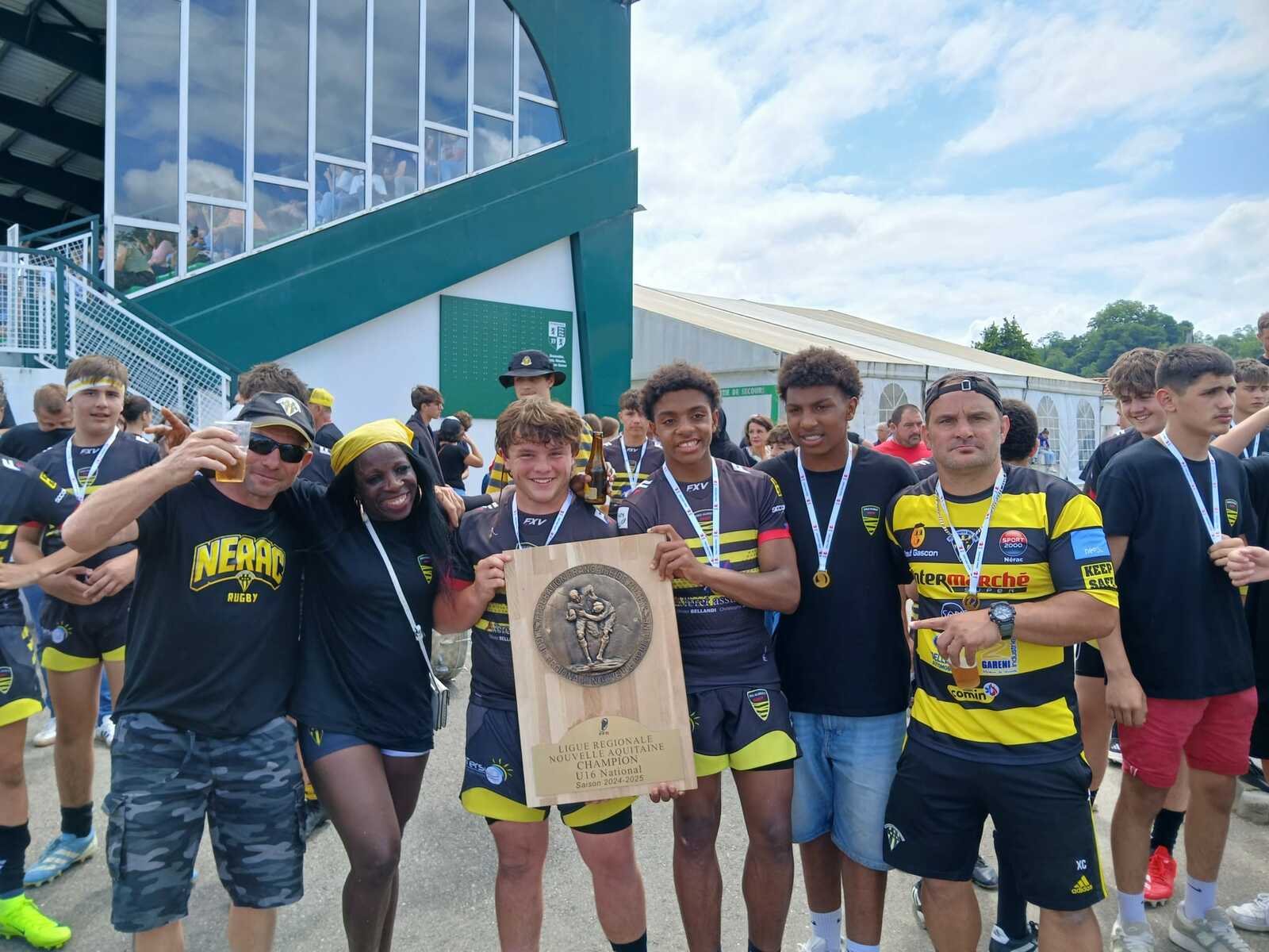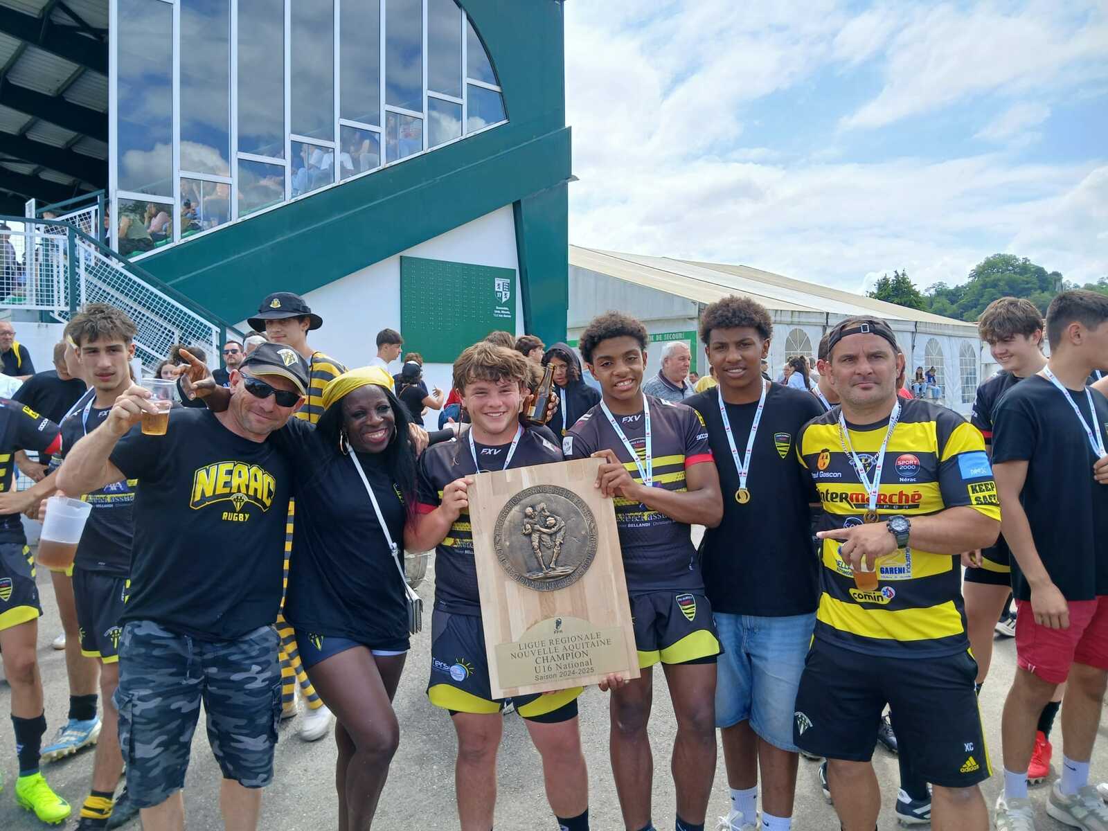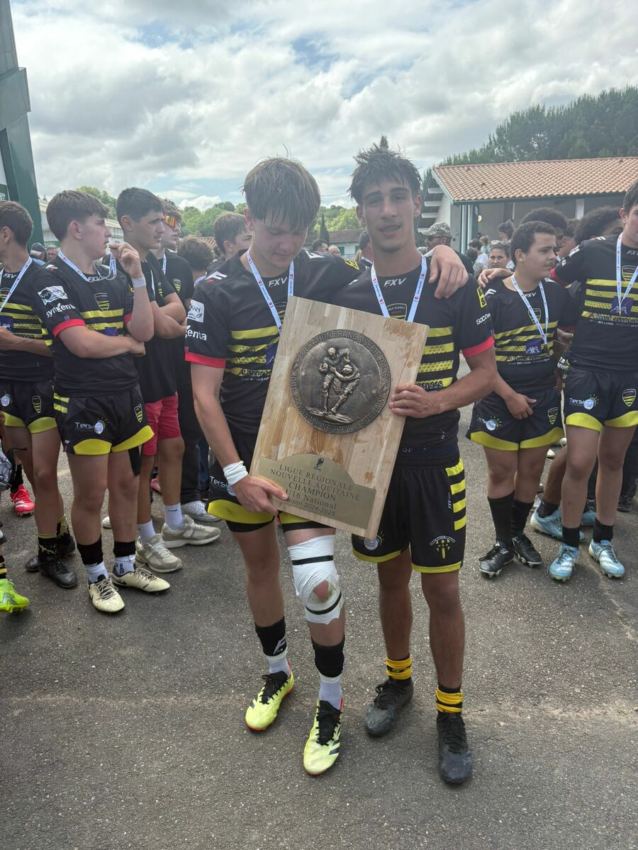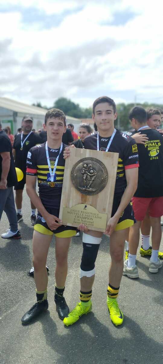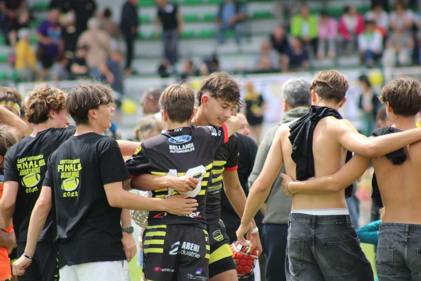 Ce sont les nouveaux champions de la Ligue Aquitaine, niveau national, qui l'auraient cru, personne. D'un niveau régional 1, il se retrouve par repêchage à un niveau national et quel parcours pour finir champion Aquitaine face à Nafarroa sur le score de 30 à 24. Un grand grand grand grand bravo![]()