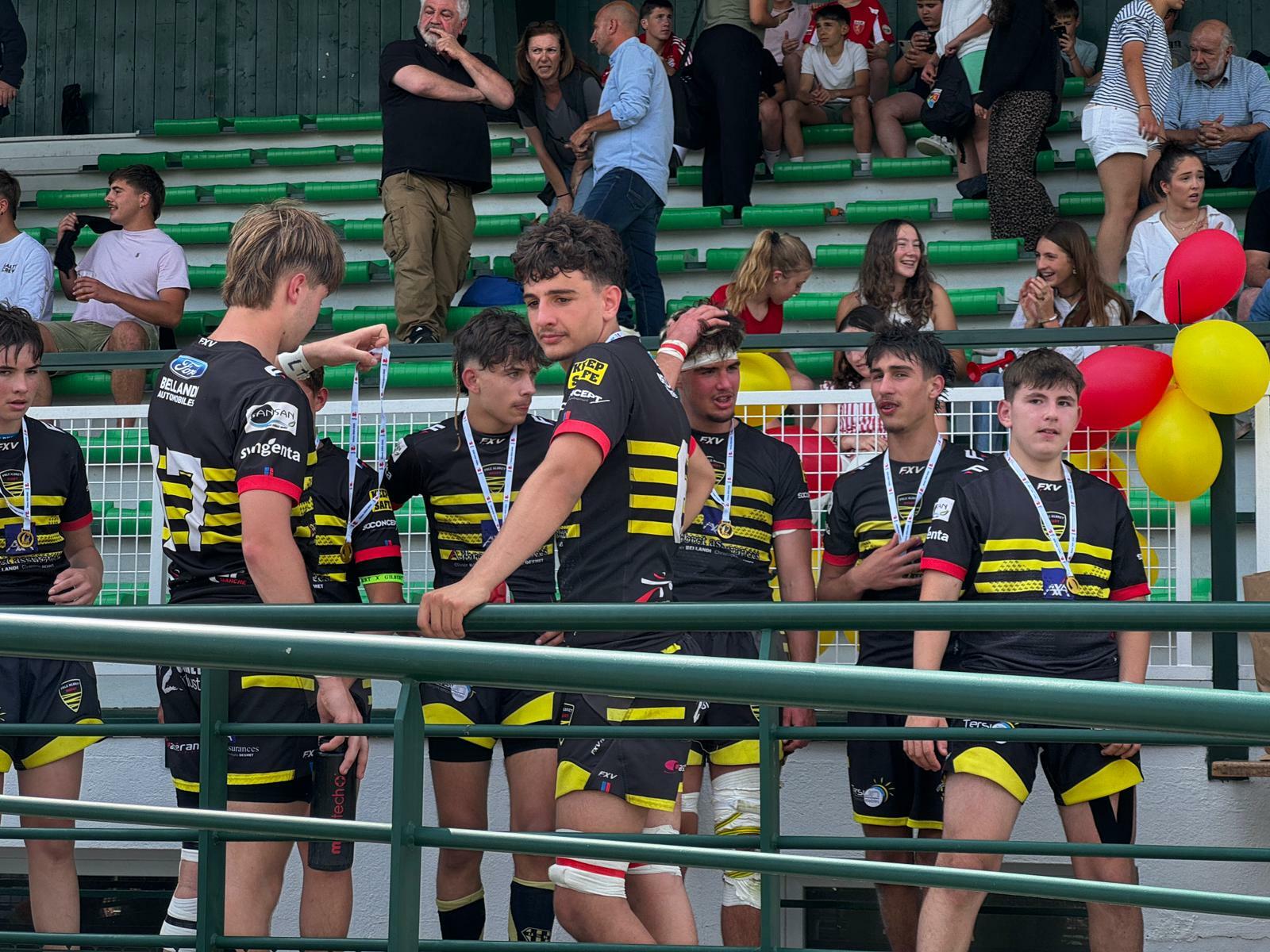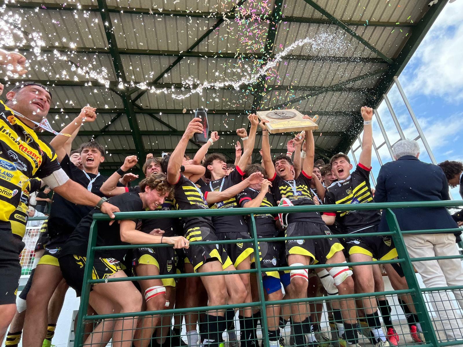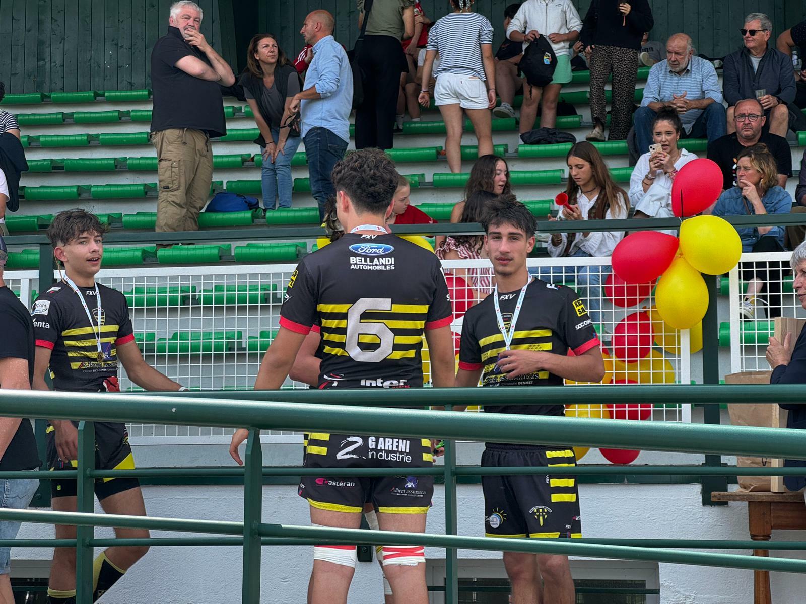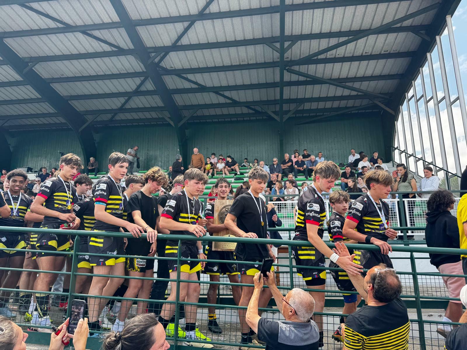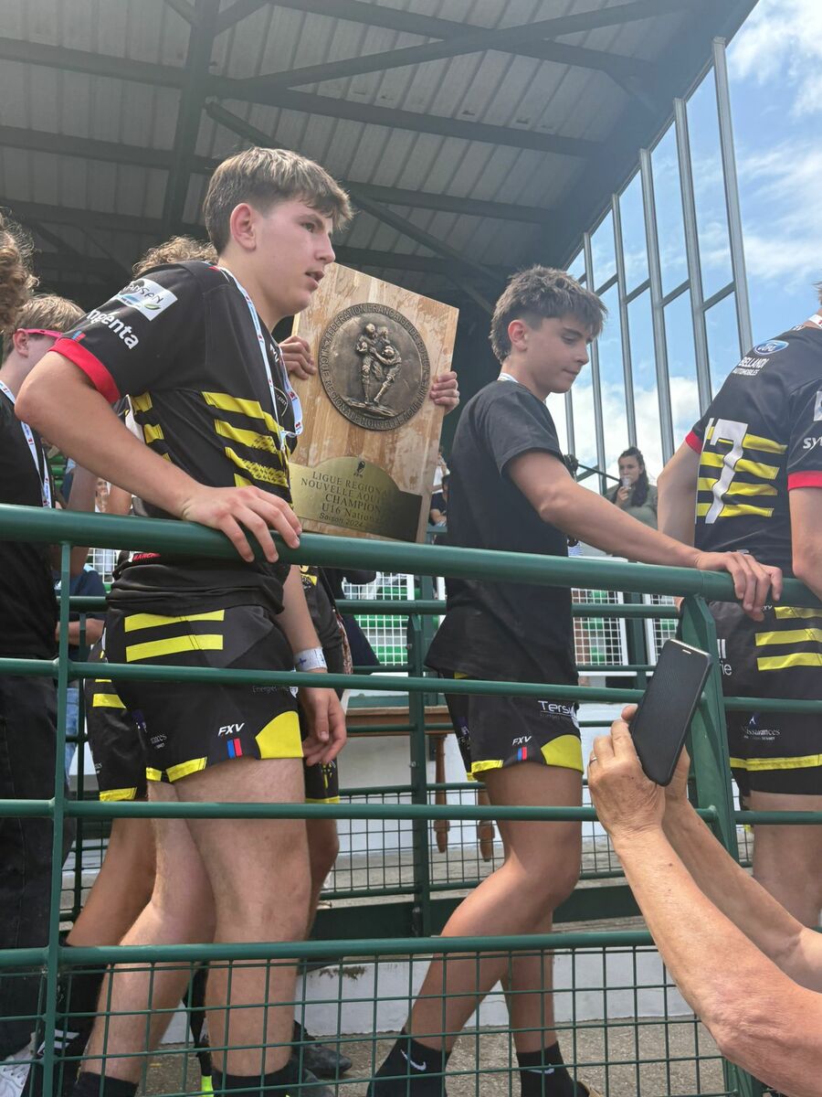 Ce sont les nouveaux champions de la Ligue Aquitaine, niveau national, qui l'auraient cru, personne. D'un niveau régional 1, il se retrouve par repêchage à un niveau national et quel parcours pour finir champion Aquitaine face à Nafarroa sur le score de 30 à 24. Un grand grand grand grand bravo![]()